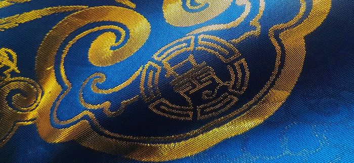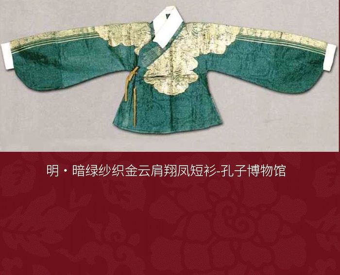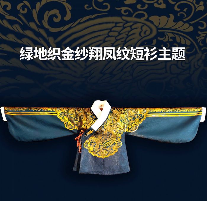 经纶造化——暗绿地织金纱云肩翔凤短衫