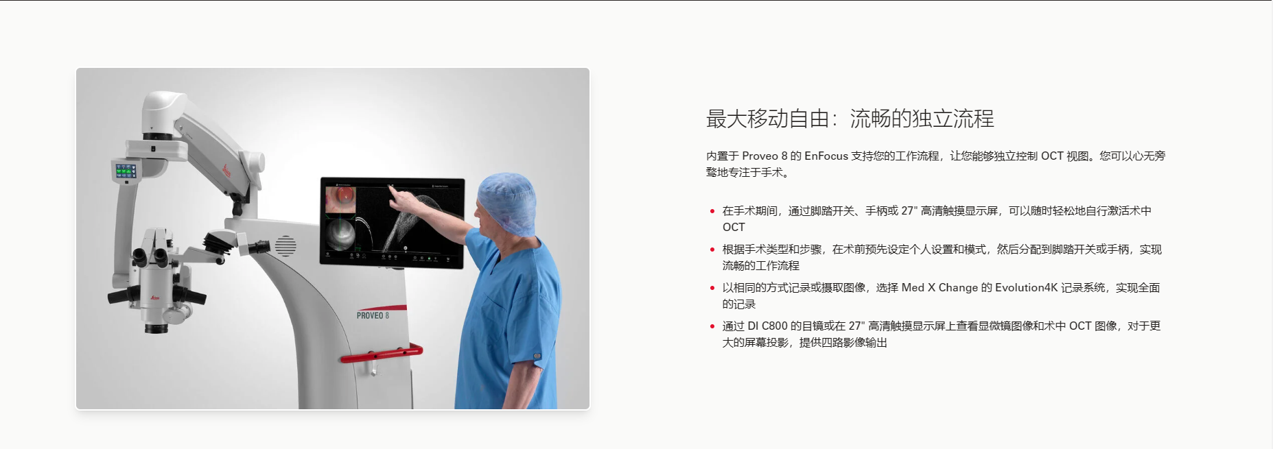 •各项参数可进行预设,并提供丰富的其他流程功能,在每个手术阶段,只需单脚轻踏一次即可优化视图